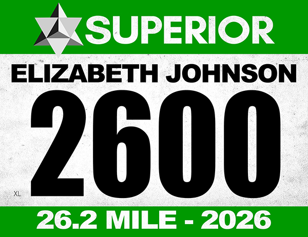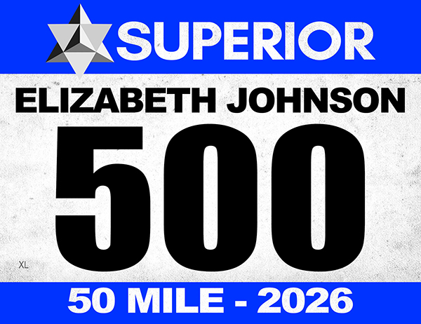 You must wear your race number and it must be clearly visible at all times. The Superior “Fall” Trail Races host three races simultaneously, the Superior 100 Mile, the Superior 50 and the Superior / Moose Mountain Marathon. Each distance will have its own unique race number (unique color and number series) so runners can be easily identified by race officials, volunteers, spectators and other runners. We ask that all competitors wear their number on the front of their body on their outer-most layer at all times and do not “fold down” your number. Runners will be tracked coming into and out of each aid station. If we cannot see your number, we cannot track you or take your finishing time and if we cannot do that, you will be disqualified and will not earn an official finish. Additionally, 100 mile runners will be issued a piece of pink and 50 mile runners a piece of blue ribbon to be tied onto the back of your hydration pack, waist belt etc. so you can be easily identified from behind has well. we encourage you to write-in your your emergency contact information on the back of your bib (scroll to the end of the page for the bib-back example), We will have Sharpie markers at check-in so you can do this. We encourage you to write-in your your emergency contact information on the back of your bib (scroll to the end of the page for the bib-back example), We will have Sharpie markers at check-in so you can do this.